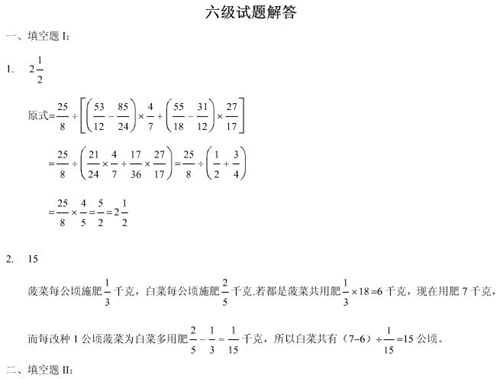 仁華數學:六級測試題答案