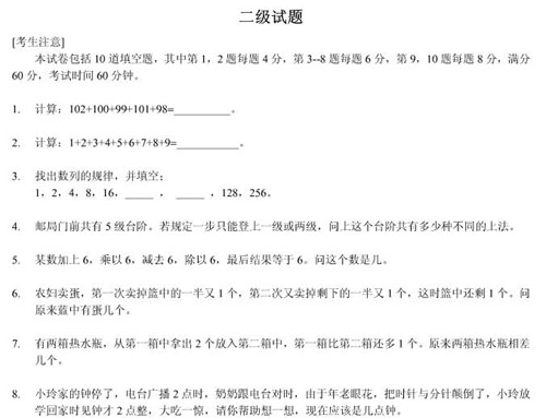 仁華數學:二級測試題試卷