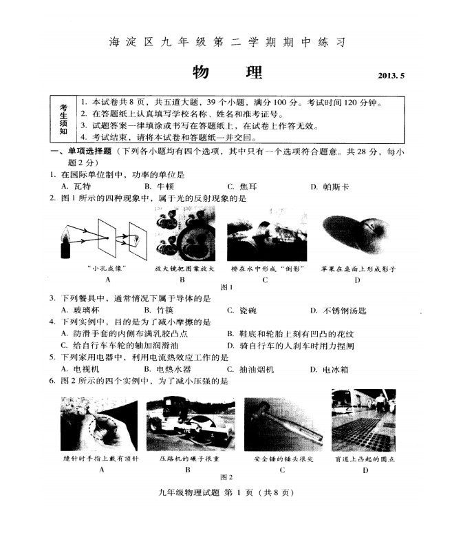 2013年北京海淀區(qū)中考一模考試結(jié)束,育路中小學(xué)教育網(wǎng)小編整理了海淀中考一模物理試卷及答案,以供大家參考學(xué)習(xí):