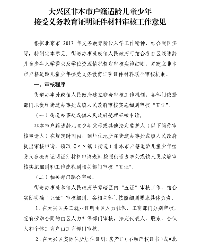 大興區教委發布2017年大興區非本市戶籍適齡兒童少年入學審核實施細則,今年非京籍幼升小入學需要準備哪些證件?非京籍幼升小入學證件審核部門是什么?證件時限要求有哪些呢?下面為大家分享政策原文件。