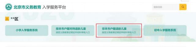 第三步,您會看到中間的四個選項,非京籍孩子請點擊非本市戶籍適齡兒童,這個就是非京籍在北京上學的家庭要選的按鈕。