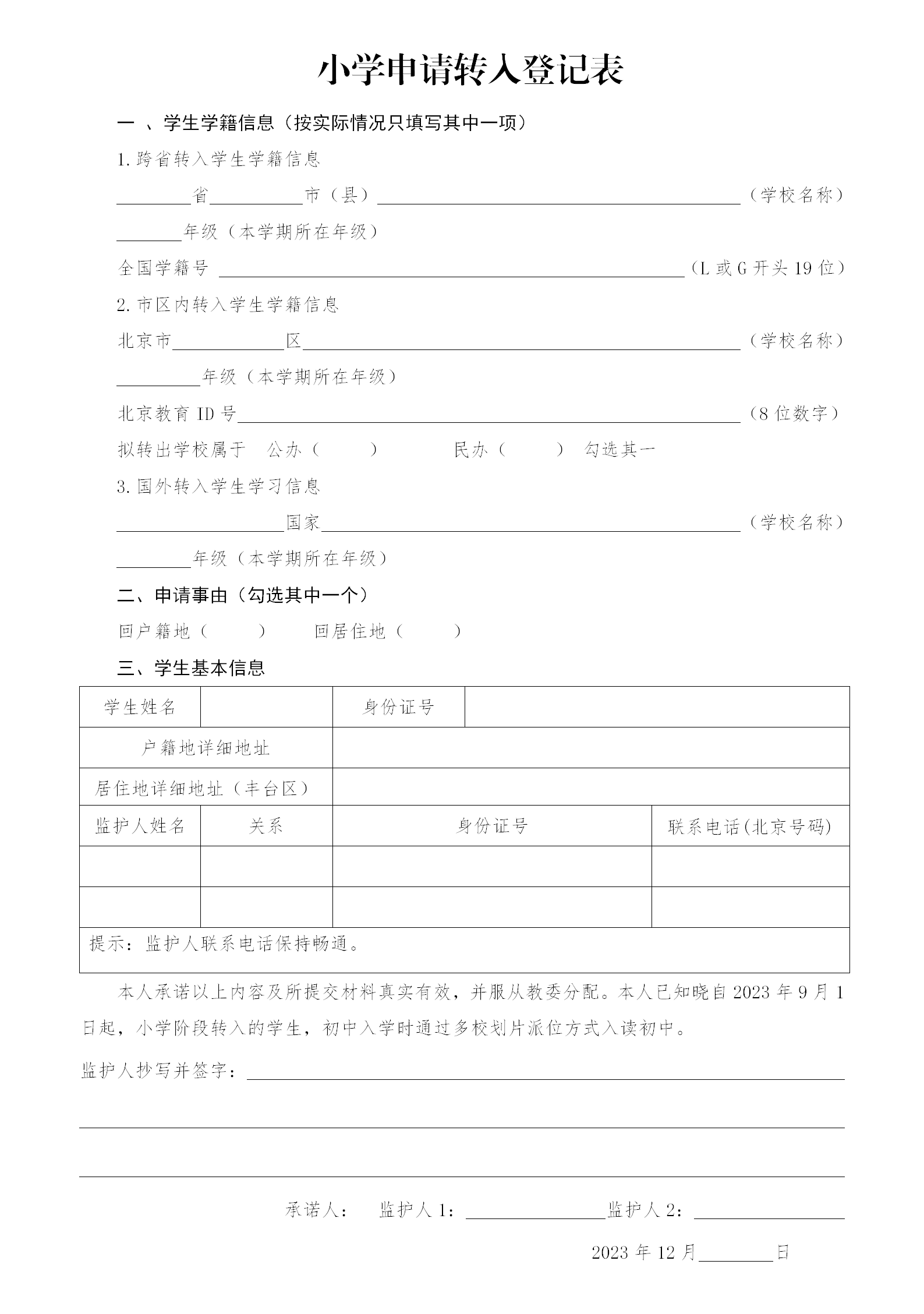 (1)《初中申請轉入登記表》;