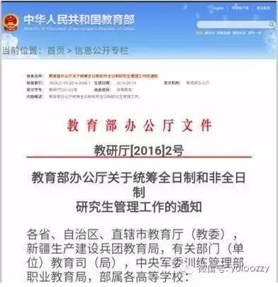 中秋節(jié)前一天,也就是2016年9月14日,教育部突發(fā)文,公布了相關(guān)全日制研究生和非全日制研究生(在職研究生)的相關(guān)政策。
