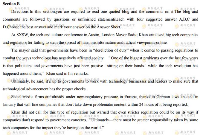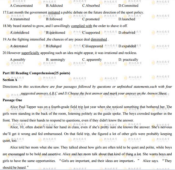 2018年同等學力申碩統考已結束,現公布2018年同等學力申碩《英語》卷一真題,詳情如下: